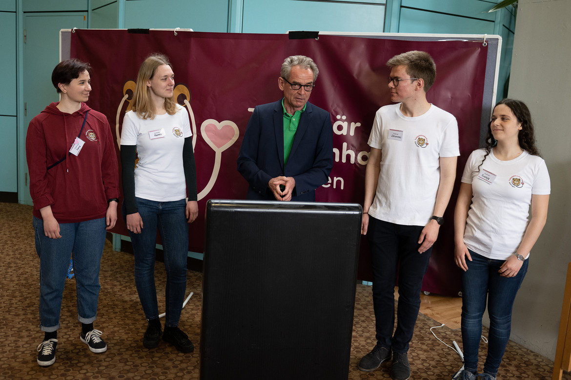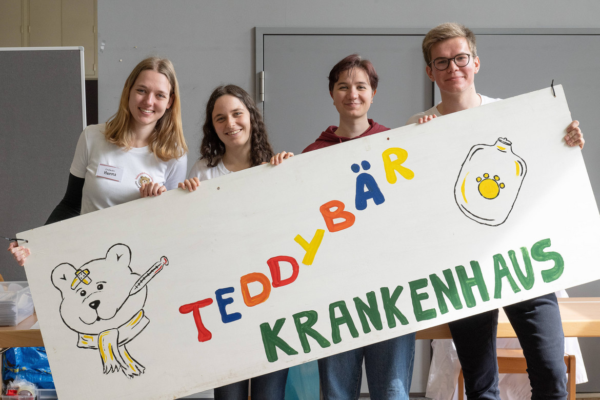 Die Macher*innen des Teddybär-Krankenhauses, Lena Stolte, Hanna Wedemeyer, Svenja Wittig und Johannes Nolting, zogen Bilanz: „Das Teddybär Krankenhaus ist für alle ein schöner Erfolg. Uns Teddy-Docs macht es immer sehr viel Spaß, mit den Kindern gemeinsam die Untersuchungen vorzunehmen, die große Aufmerksamkeit zu spüren und die leuchtenden Kinderaugen zu sehen. Wir merken, wie die Kinder großes Interesse und Freude daran haben, bei den Behandlungen mitzumachen“, sagt Mitorganisatorin Lena Stolte.