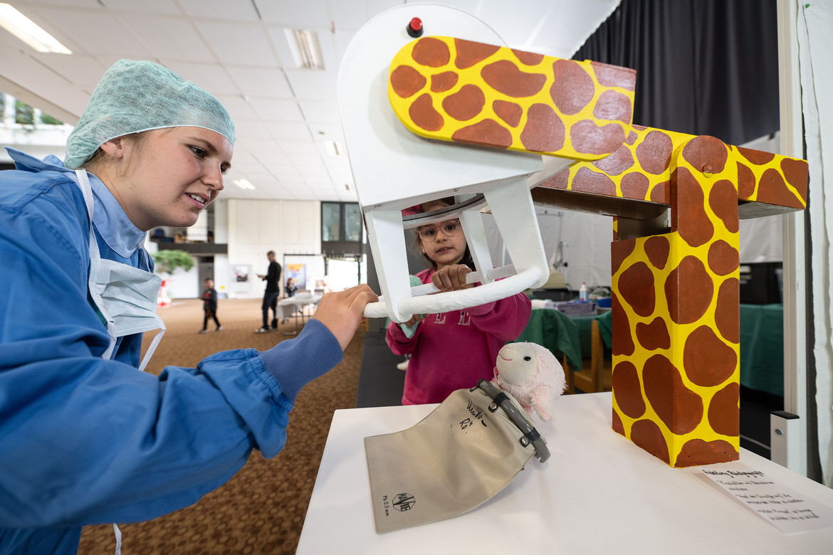 Nachmittags war dann Zeit für „Privatpatient*innen“ mit ihrer Begleitung. Die Spezialisten aus allen Fachrichtungen halfen, verletzte Tatzen, gebrochene Beinchen, verschluckte Schrauben oder eingerissene Fellchen erfolgreich zu kurieren.