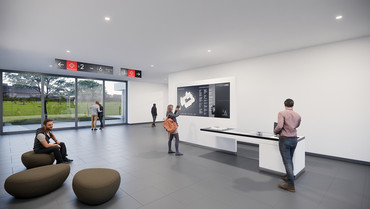 So umfasst das prämierte Konzept ein Informations-, Orientierungs- und Leitsystem. Es zeichnet sich durch die intelligente Verknüpfung von analogen und digitalen Elementen aus und verbindet Bildschirme mit einfachen, intuitiv verständlichen Leitelementen wie Schildern oder Infotafeln. Eine auf den ersten Blick simple Zeichensprache schafft Klarheit, was sich hinter welcher Tür verbirgt oder welcher Weg eingeschlagen werden muss, um zum gewünschten Ziel zu kommen.