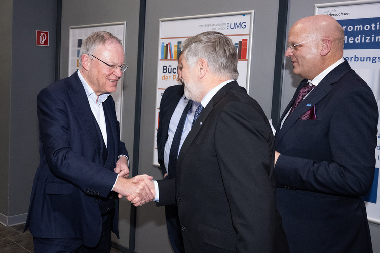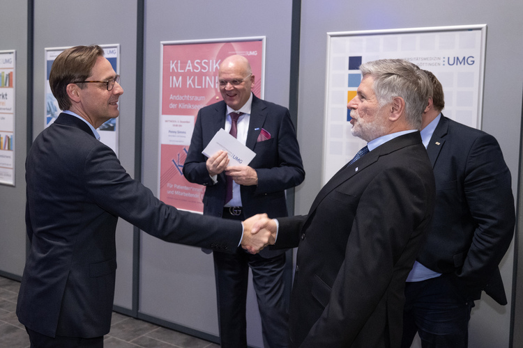 Unter den Gästen des Jahresempfangs waren auch Stephan Weil, Ministerpräsident a. D. und seit kurzem Vorsitzender des Stiftungsausschusses der Georg-August-Universität, Oberbürgermeisterin Petra Broistedt sowie die beiden Göttinger Nobelpreisträger Prof. Dr. Dr. Erwin Neher und Prof. Dr. Stefan Hell. Darüber hinaus zählten die Vizepräsidentinnen und Vizepräsidenten der Universität Göttingen, Dr. Valerie Schüller, Prof. Dr. Inge Hanewinkel, Prof. Dr. Bernhard Brümmer und Prof. Dr. Max Wardetzky zu den Gästen. Zudem waren die Medizinische Hochschule Hannover (MHH) sowie viele weitere Partner- und Nachbarkliniken durch ihre führenden Köpfe vertreten.