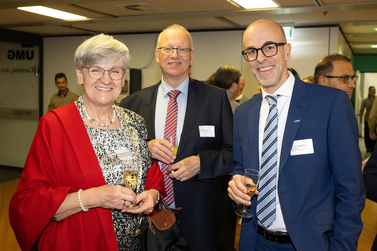 Mit einem Blick auf UMG-Themen des Jahres 2025 eröffnete Prof. Brück den Abend. Die aktuellen und anstehenden Bautätigkeiten an der Robert-Koch-Straße waren dabei natürlich zuerst zu benennen. Für die Baustufe 1, das zukünftige „NIKO“ (Notaufnahme, Intensivmedizin, Krankenpflege, Operationszentrum), liegen die Arbeiten voll im Zeitplan, die Übergabe an die UMG wird für 2029 erwartet. Die demgegenüber etwas kleinere Baustufe 2, das Eltern-Kind-Zentrum „ELKI“ befindet sich in Planung und soll 2030 übergeben werden. Auch im Hinblick auf das ELKI zeigte sich Brück zuversichtlich, dass der anvisierte Zeit- und Kostenplan gehalten werden kann.