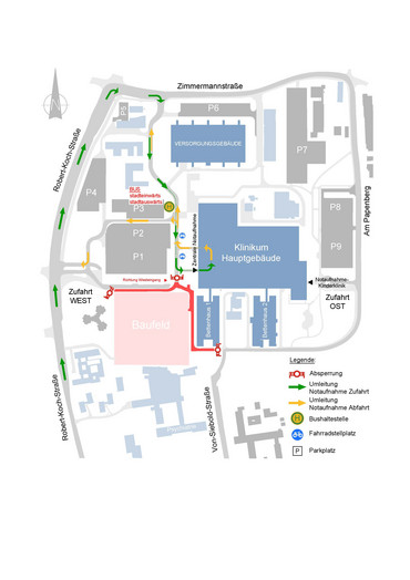 Neue Zufahrt zur UMG-Notaufnahme über Zimmermannstraße. Grund: Abriss des Pumpwerks beginnt