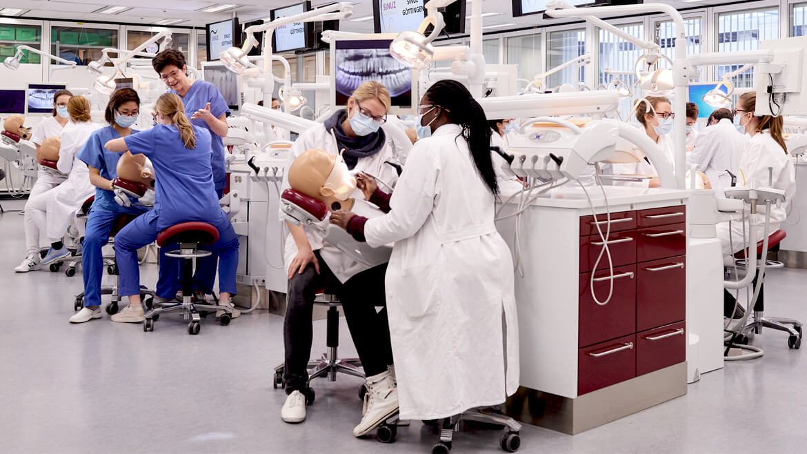 Die Göttinger Lehre erfolgt überwiegend in neuen und gut ausgestatteten Kurs- und Laborräumen. Die Integration der Zahnmedizin in die Universitätsmedizin Göttingen und in das Uniklinikum sichert den Studierenden der Zahnmedizin die Nutzung vieler Einrichtungen wie der Bibliothek mit Ihren innovativen und umfangreichen Lernmöglichkeiten und des SINUZ.