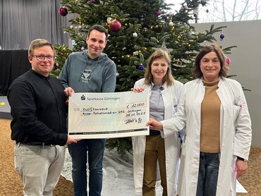 Auf dem Bild zu sehen: Steven Nofz, Dominic Nohl, Elisabeth Böning, Prof. Dr. Jutta Gärtner (v.l.n.r.). Foto: UMG/Fundraising