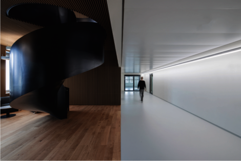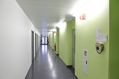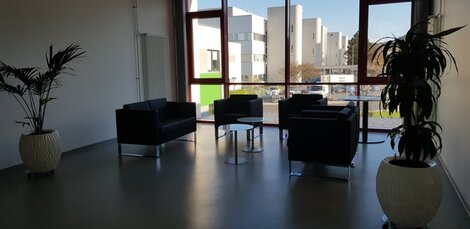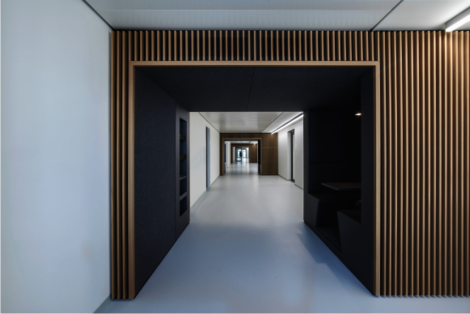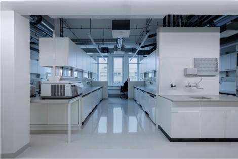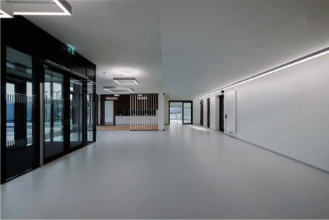 In den beiden Schenkeln des Gebäudes sind die Labore und dazugehörigen Büroräume untergebracht. Die direkte Beziehung von Laboren und Büroräumen ermöglicht kurze Wege und somit erhöhte Effektivität im Arbeitsablauf.